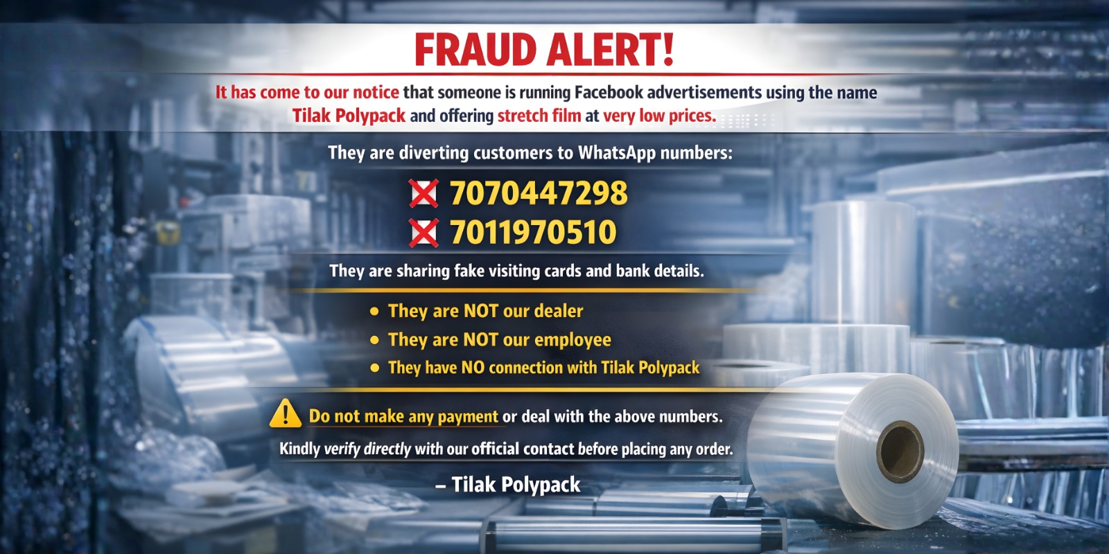 We manufacture all our products using premium food grade raw material, which is procured from the most reputed suppliers across the world. Our vast product range includes Lamination PE Film, Pharma Poly Film, Surface Protection Film, Stretch Film, Shrink Film, Mulch Films, Greenhouse Films, Milk Packaging Film, Water Packaging Film, Ice Bags, Ghee Packaging Film, SMP Packaging Film, Pesticide Packaging Laminates, Dairy Packaging Laminates, Standup Pouches etc.